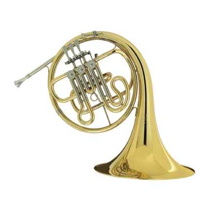 B-Horn, Messing mit Neusilberzügen, 3 Drehventile, Klarlack, Etui mit Rucksackgarnitur
