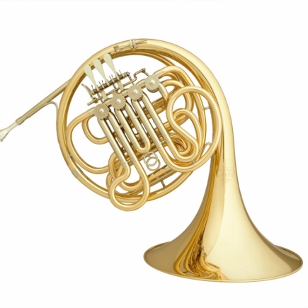 F/B-Doppelhorn Hoyer 801 AL, Messing mit Neusilberzügen, 4 Drehventile, Klarlack, abschraubbares Schallstück, Etui mit Rucksackgarnitur