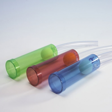Der Breath Builder wird mit zwei Schläuchen geliefert: Small (für größeren Widerstand): hohe Blas- und Holzblasinstrumente (außer Flöte) und Large (für geringeren Widerstand): für Gesang, tiefe Blasinstrumente und Flöte.
