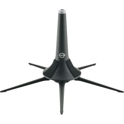 Trompetenständer K&M 15213, schwarz, 5 Füße im Ständer versenkbar, Transport im Schallstück möglich.